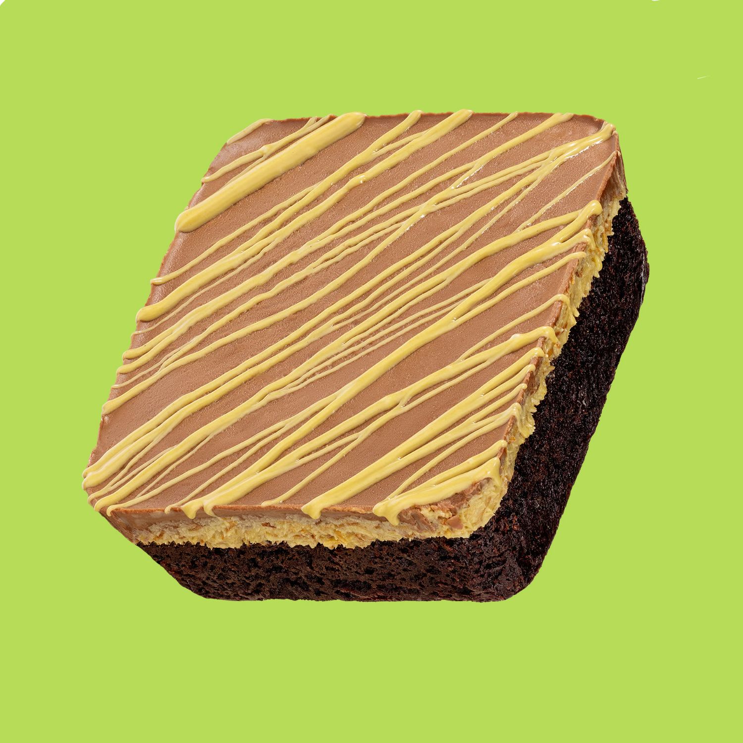 A soft fudgy brownie with a crunchy Kunafa and pistachio filling topped with a layer of milk chocolate and drizzled with even more pistachio cream